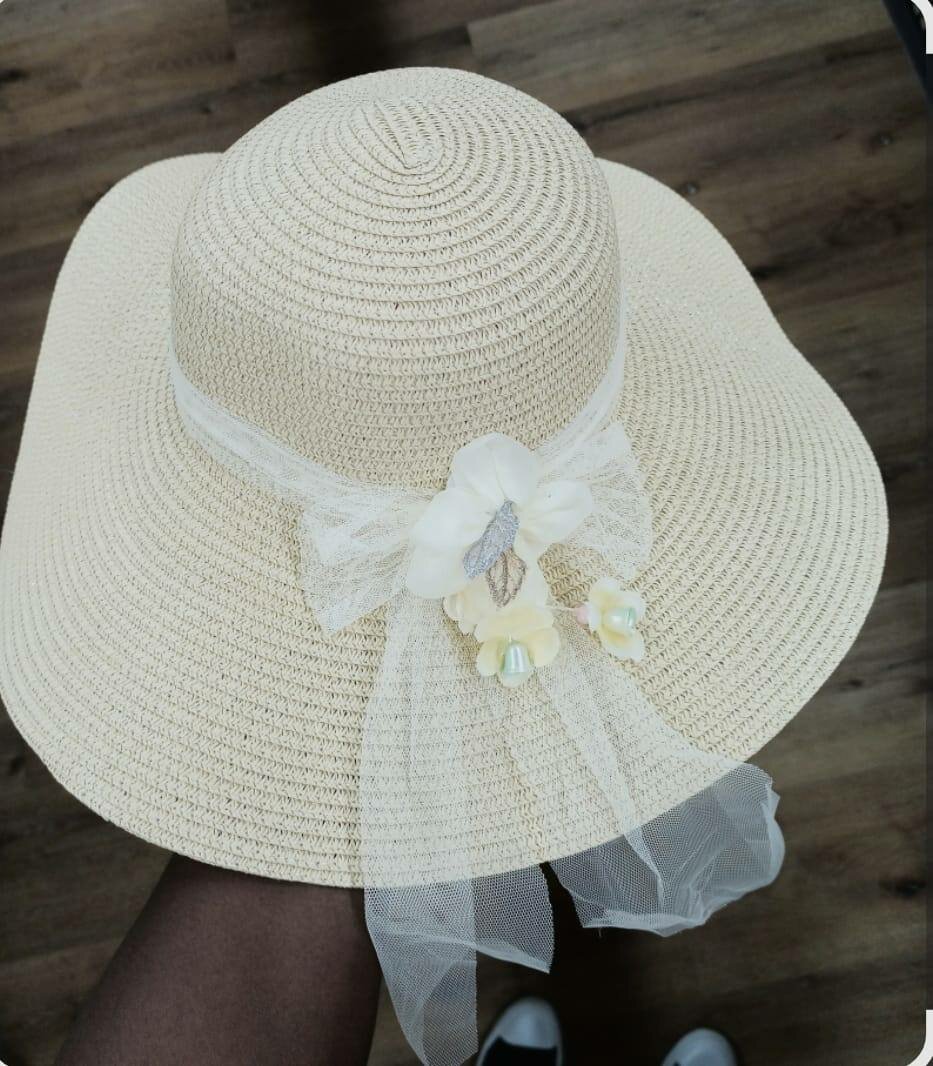 Élégant chapeau en paille pour femmes avec décoration florale. Parfait pour une journée ensoleillée. Léger et respirant, il offre protection et style.