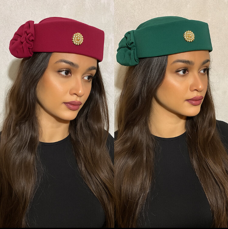 Découvrez ce chapeau foulard chic et confortable, orné d'un bijou raffiné. Disponible en plusieurs couleurs élégantes. Parfait pour toutes vos tenues de cérémonie ou de travail
