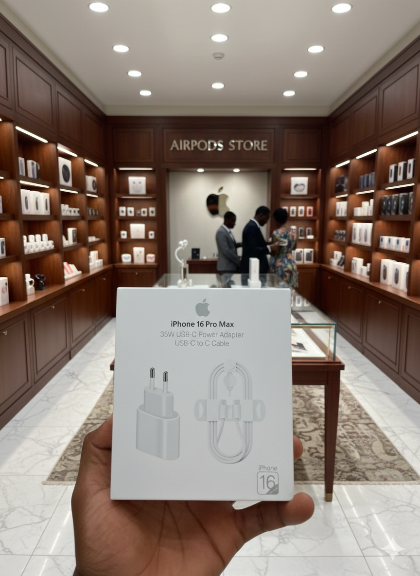 Découvrez le chargeur Apple 35W USB-C, conçu pour les iPhone 16 Pro Max. Charge rapide et efficace, sous emballage d'origine.