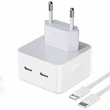 Rechargez efficacement vos appareils avec cet adaptateur secteur USB-C de 60 W. Il est doté d'une protection contre les surcharges, les surtensions et les courts-circuits. Un câble USB-C vers Lightning est inclus pour une connectivité polyvalente. Son format compact est idéal pour les voyages.
