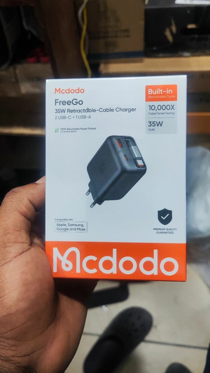 Chargez vos appareils rapidement avec le chargeur Mcdodo FreeGo 35W. Ce chargeur compact et rétractable est équipé de 2 ports USB-C et 1 USB-A, idéal pour smartphones, iPhones et appareils Samsung. Parfait pour la maison et le voyage avec une puissance de 35W.