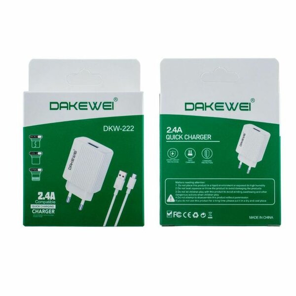 Chargez rapidement vos appareils avec le chargeur mural DAKEWE DKW-333. Ce chargeur USB compact et fiable délivre une puissance de 2.4A, idéal pour smartphones et tablettes. Profitez d'une charge efficace avec ce compagnon de voyage pratique.