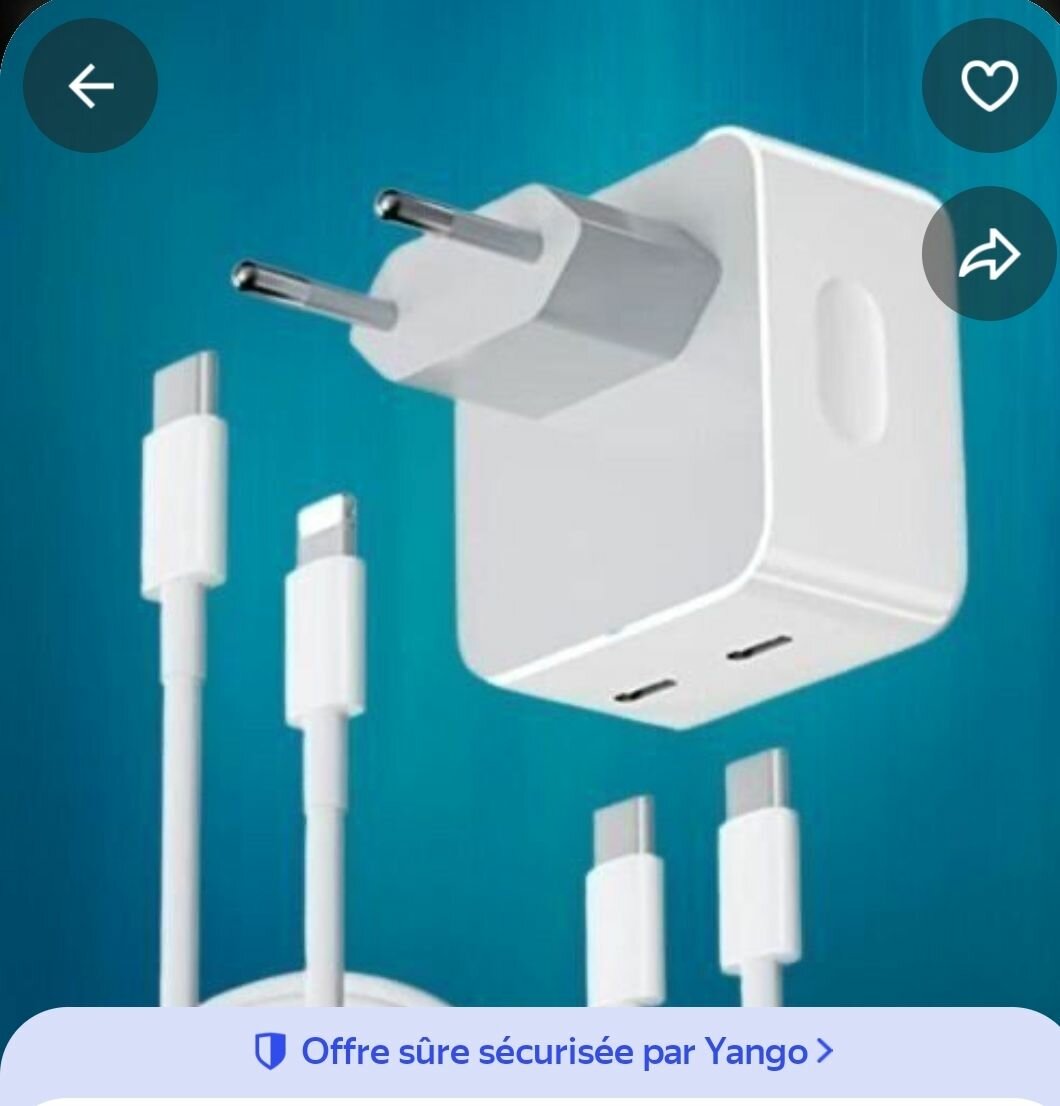Optimisez votre charge avec ce chargeur rapide double USB. Parfait pour smartphones et tablettes. Compact et efficace, il offre une charge rapide et sécurisée à la maison ou au bureau. Inclut deux câbles pour maximaliser la compatibilité.