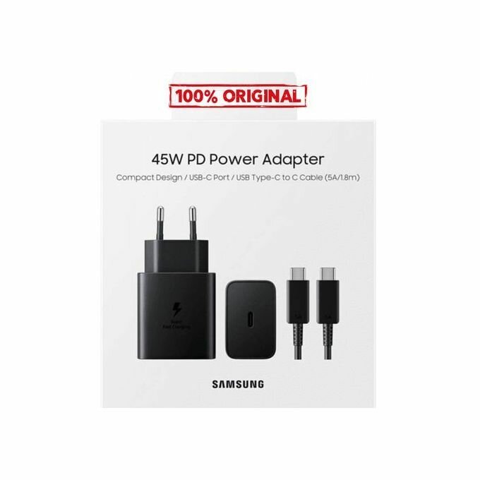 Profitez d'une charge ultra-rapide avec le chargeur 45W Samsung. Compatible USB-C, idéal pour smartphones et tablettes. Design compact et câble inclus pour une utilisation pratique.