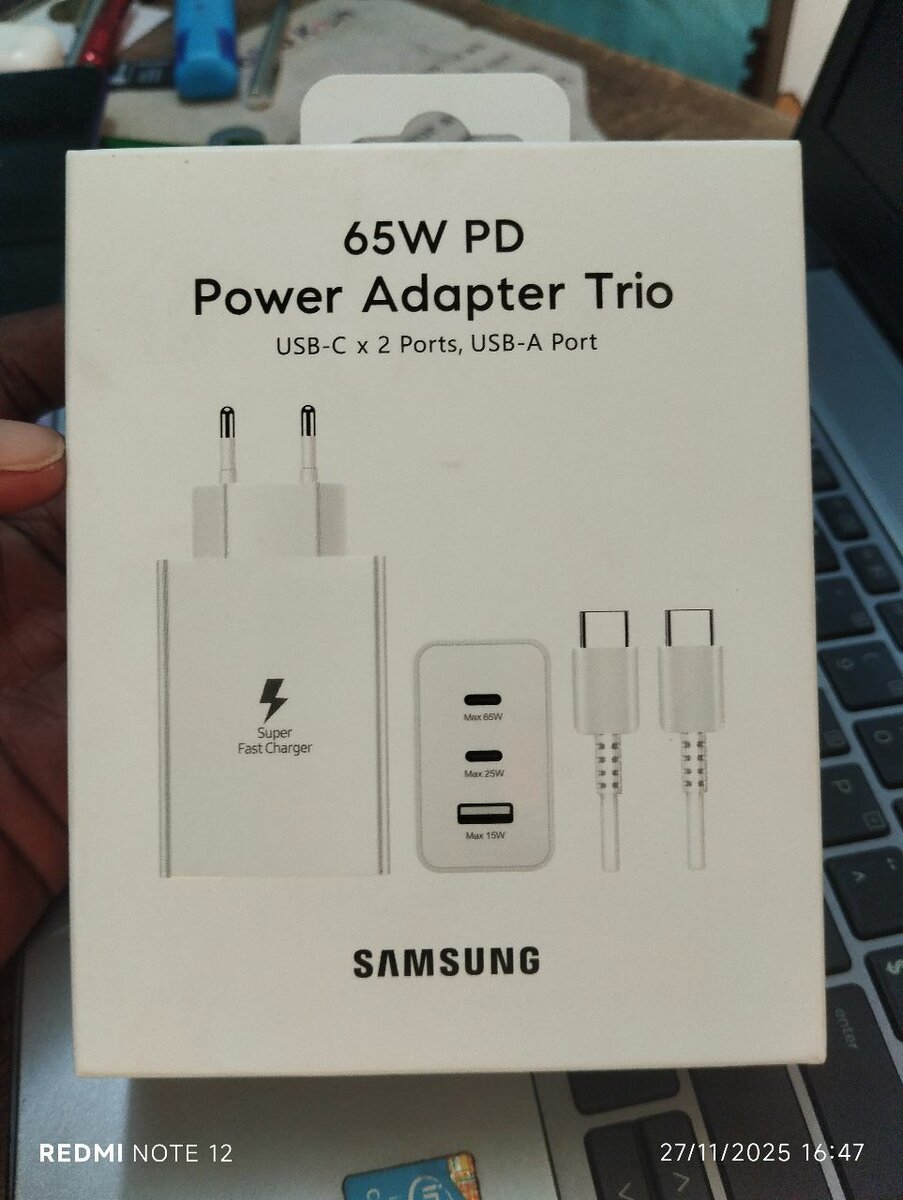 Découvrez le chargeur Samsung 65W avec 2 ports USB-C et 1 port USB-A. Compatible Android et iPhone, il recharge trois appareils simultanément. Idéal pour la maison ou le bureau. Profitez d'une recharge rapide et sécurisée. Parfait pour smartphones, tablettes et autres gadgets.