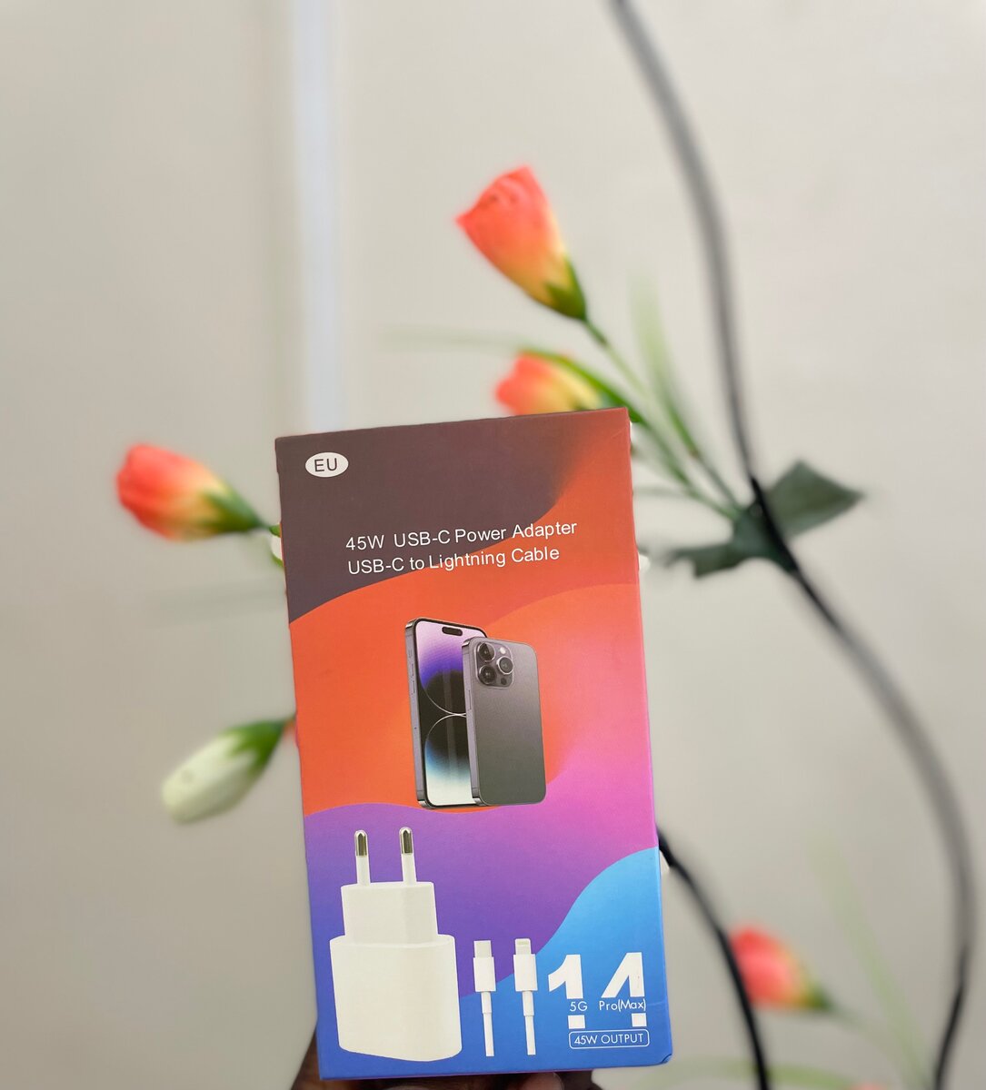 Découvrez notre chargeur USB-C 45W avec câble Lightning, compatible iPhone. Charge rapide et sécurisée. Idéal pour les appareils Apple.