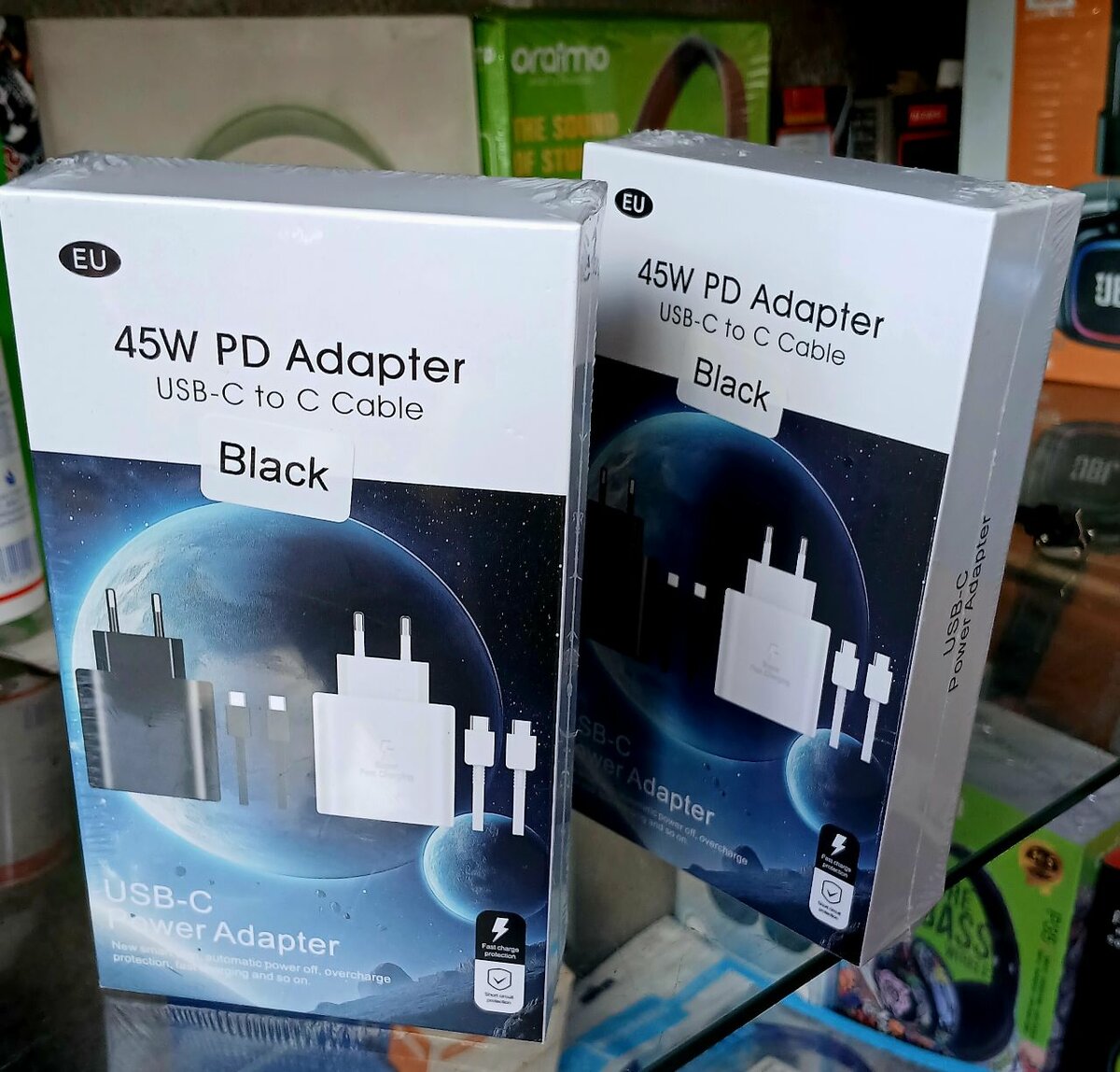 Optimisez votre charge avec notre adaptateur 45W PD USB-C. Idéal pour smartphones et tablettes. Câble USB-C inclus pour une efficacité maximale. Noir élégant pour un look moderne.