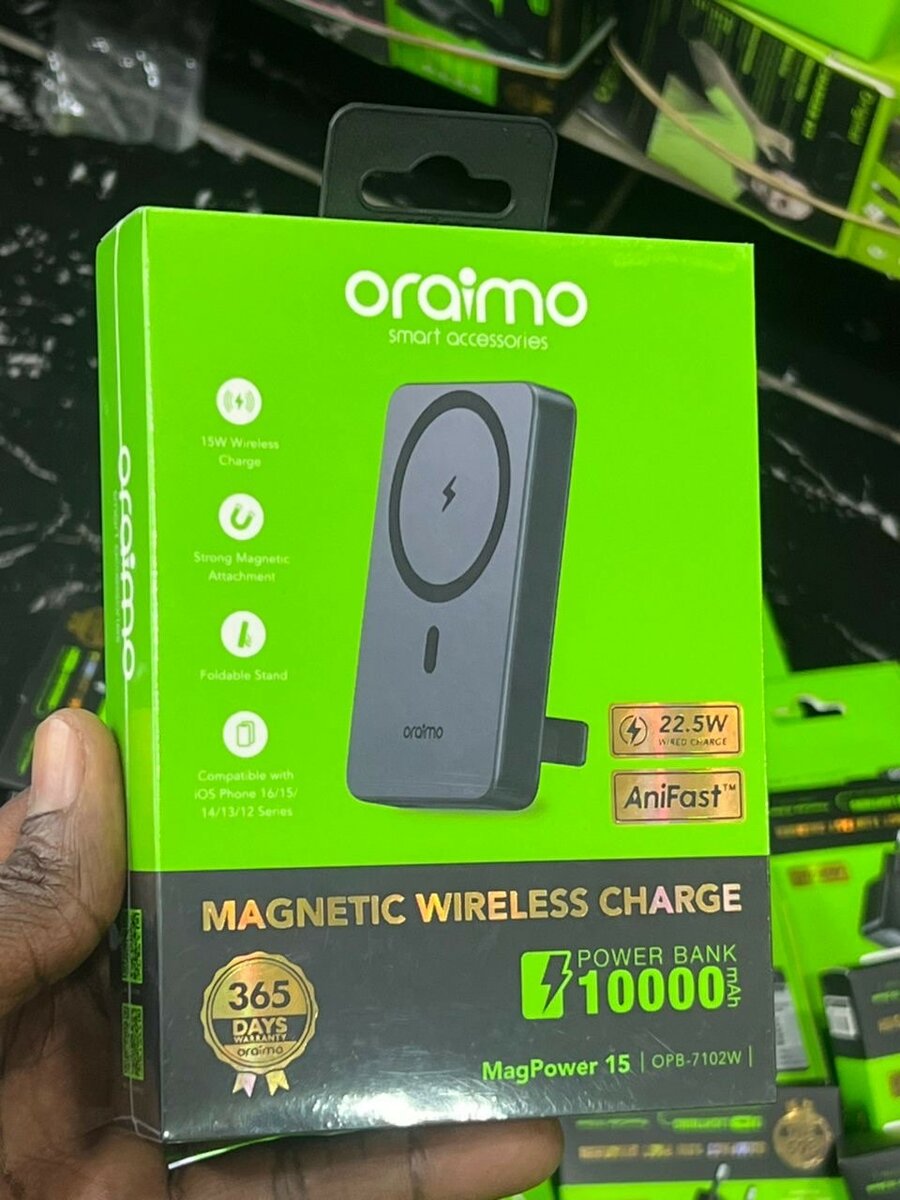 Découvrez le chargeur sans fil magnétique Oraimo avec une puissance de 10000mAh et une charge rapide de 22.5W. Idéal pour des recharges rapides et efficaces à tout moment. Son design compact et ses aimants puissants garantissent une fixation sécurisée, parfait pour les déplacements. Compatible avec diverses marques de téléphones, c'est l'accessoire parfait pour vos besoins technologiques quotidiens.