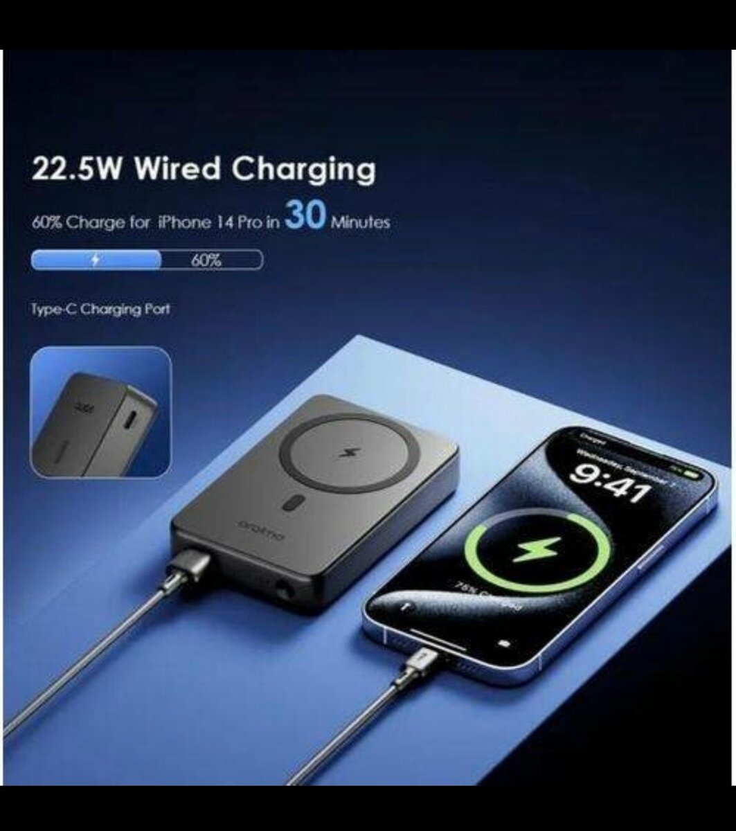 Découvrez le chargeur sans fil magnétique Oraimo, idéal pour une recharge rapide et efficace. Avec 15W pour une charge sans fil et 22.5W en filaire, il est parfait pour les iPhones et bien plus encore. Doté d'une capacité de 10000mAh, il est votre compagnon idéal pour des journées bien chargées. Optez pour la puissance et la sécurité avec Oraimo!