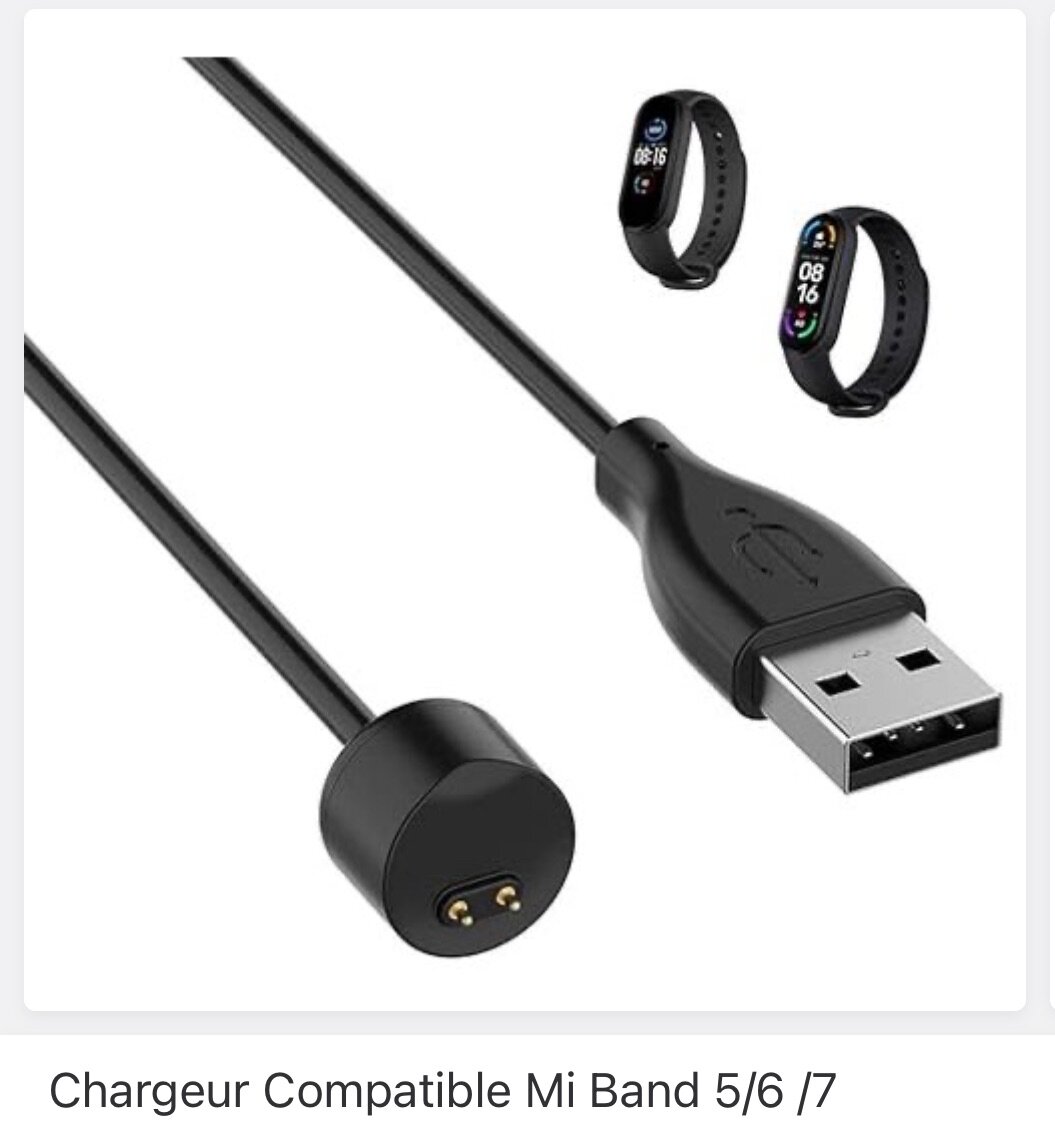 Chargeur USB portable pour Mi Band 5, 6 et 7. Facile à utiliser et parfait pour des recharges rapides en déplacement. Idéal pour les amateurs de fitness.