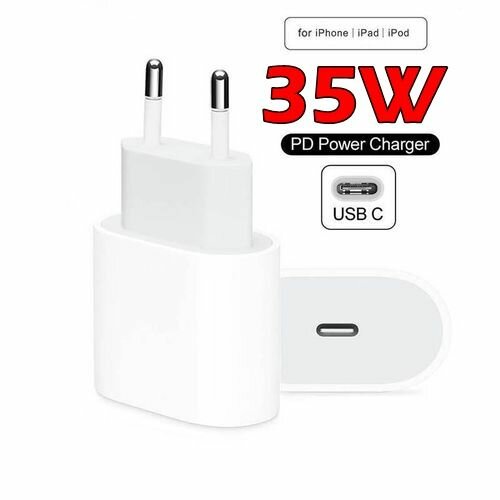 Chargeur USB-C 35W pour iPhone, iPad et iPod. Offre une charge rapide et efficace pour vos appareils. Compatible avec les dernières technologies Power Delivery pour une performance optimale. Idéal pour la maison ou le voyage.