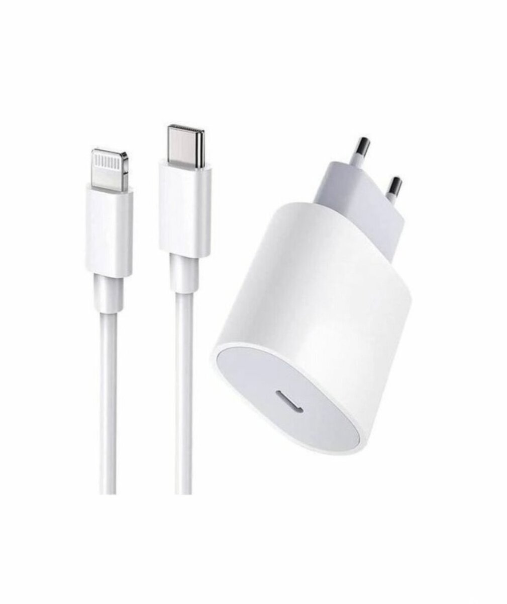 Chargeur compact et câble USB-C pour iPhone. Conçu pour une charge rapide et efficace. Compatible avec les appareils Apple. Léger et portable, idéal pour une utilisation quotidienne.