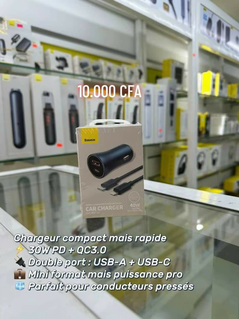Chargeur voiture compact et rapide 30W avec double port USB-A et USB-C. Idéal pour conducteurs pressés qui cherchent une puissance pro dans un format mini. Parfait pour tous les appareils !