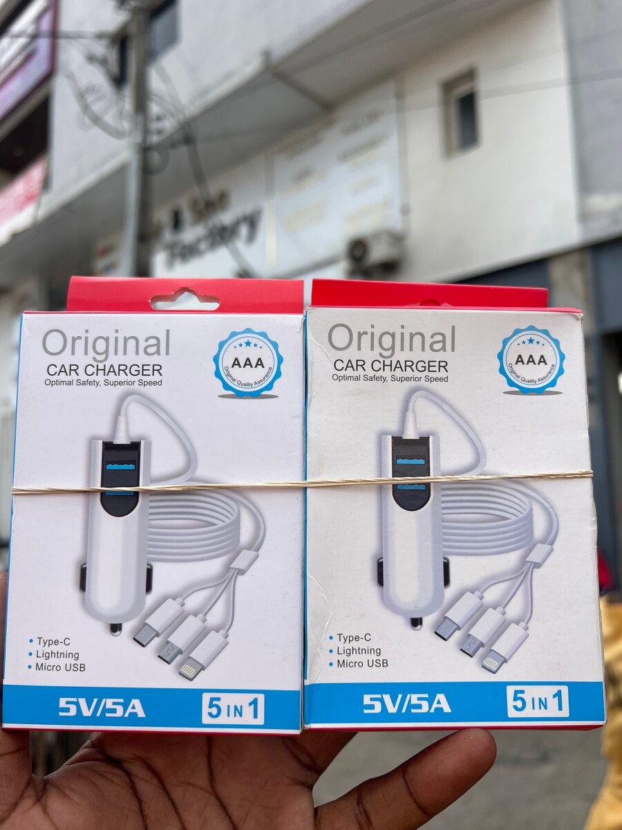 Optimisez votre chargement en voiture avec ce chargeur 5-en-1. Compatible Type-C, Lightning et Micro USB, il est l'accessoire indispensable pour tous vos trajets. Sécurité et vitesse assurées pour tous vos appareils.