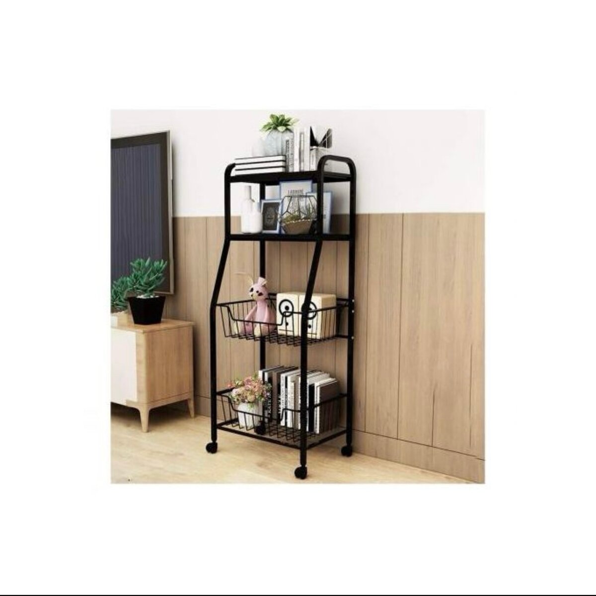 Étagère de cuisine multifonction et grand espace de rangement : taille (42 cm (L) x 30 cm (l) x 115 cm (H), l'étagère utilitaire de cuisine a un grand espace. Les panneaux supérieurs robustes peuvent contenir un four à micro-ondes et d'autres appareils de cuisine. Sous deux paniers peuvent stocker un grille-pain, des épices, des assiettes, des plats et toute autre chose que vous voulez.