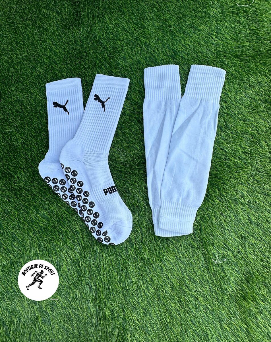 Chaussettes de football Puma blanches pour homme, idéales pour le sport. Conçues pour offrir confort et performance.