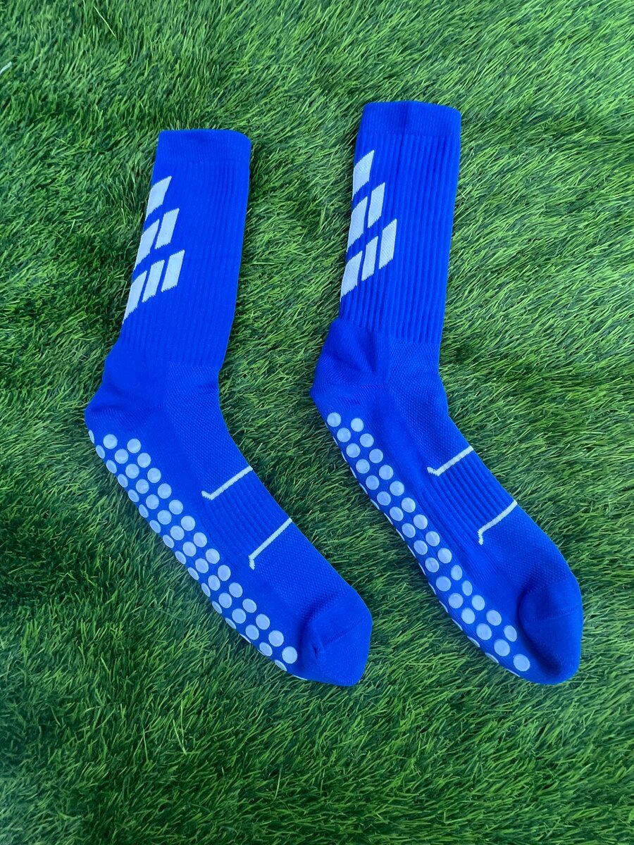 Parfaites pour les amateurs de sport, ces chaussettes de sport bleu électrique offrent une adhérence antidérapante et un confort ultime. Idéales pour le football, le basketball ou tout autre sport nécessitant une stabilité accrue. Fabriquées avec des matériaux respirants pour assurer le confort pendant l'effort. Un choix intelligent pour améliorer vos performances sur le terrain!