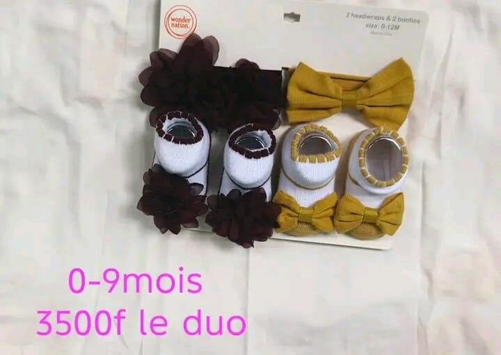 Adorables chaussettes et serre-têtes pour bébé 0-9 mois. Style mignon et confort assuré, parfait pour toutes occasions.