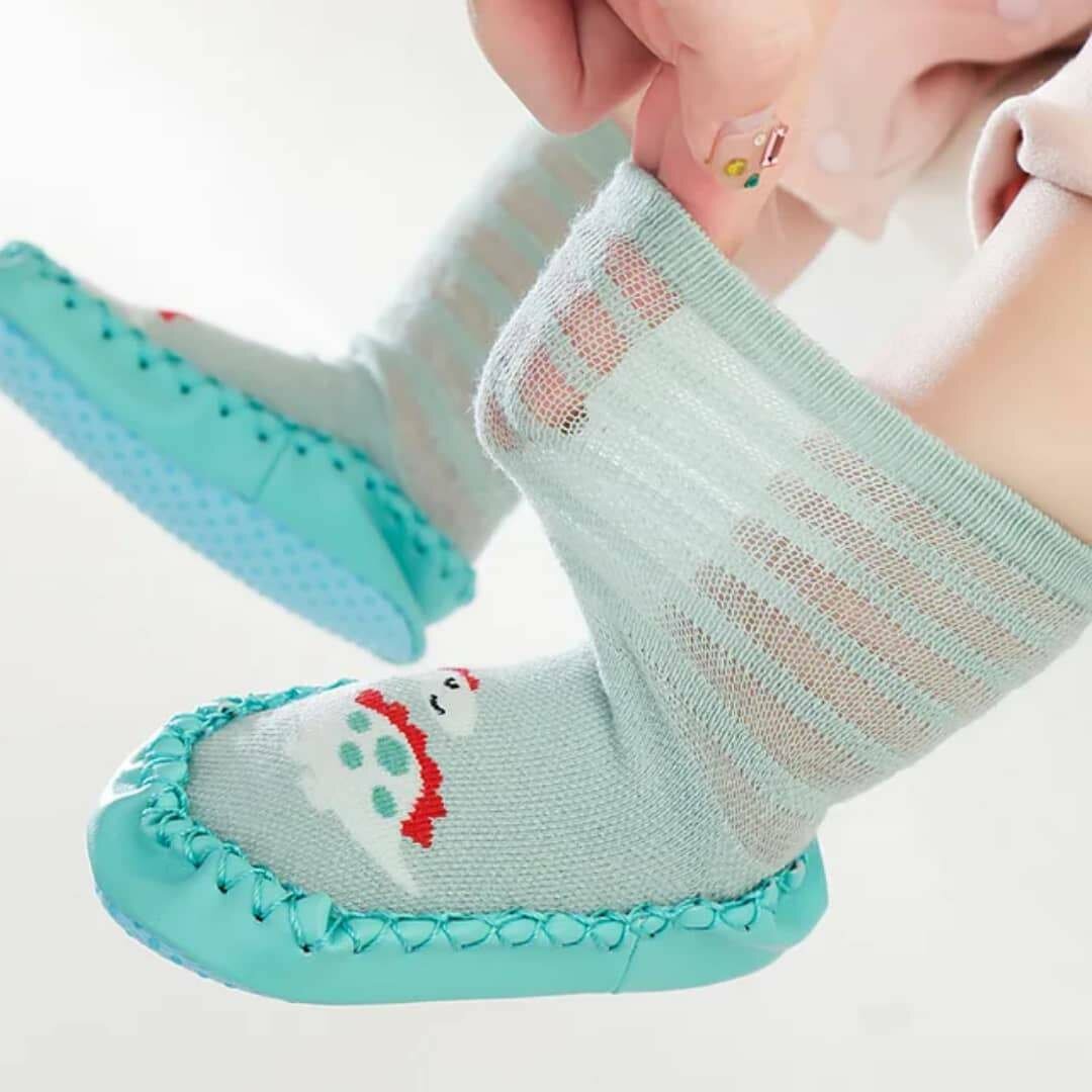 Adorables chaussons pour bébé, parfaits pour les premiers pas. Semelle antidérapante pour sécurité. Design amusant avec motifs d'animaux. Confortables et faciles à enfiler, idéaux pour la maison.