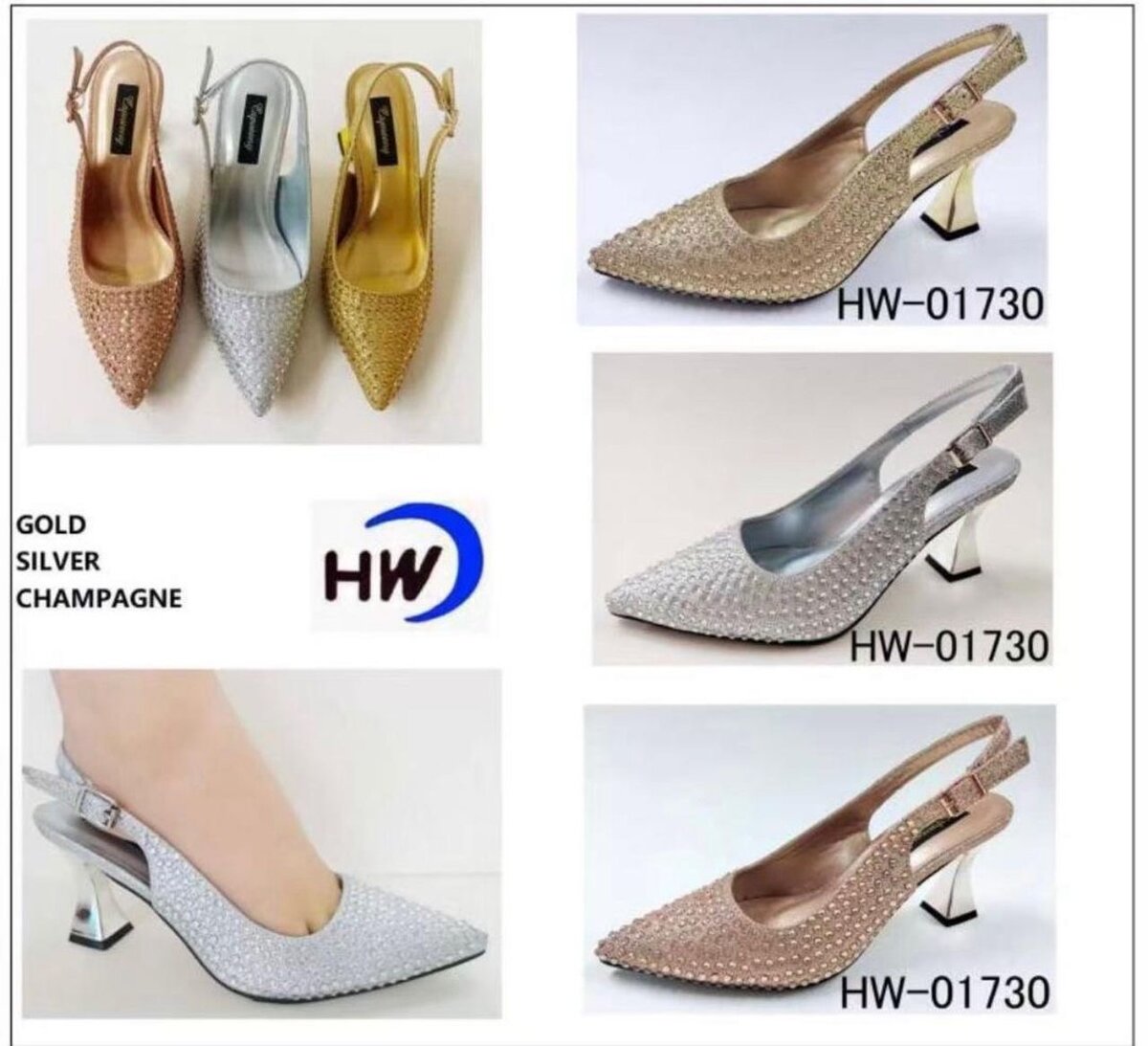 Découvrez les chaussures à talons HW, parfaites pour compléter votre tenue de soirée. Disponibles en plusieurs couleurs élégantes comme l'argent, l'or et le champagne, ces chaussures ajoutent une touche de glamour à votre look. Idéales pour des événements spéciaux, elles allient style et confort. Faites de chaque sortie un moment exceptionnel avec ces talons étincelants et sophistiqués.