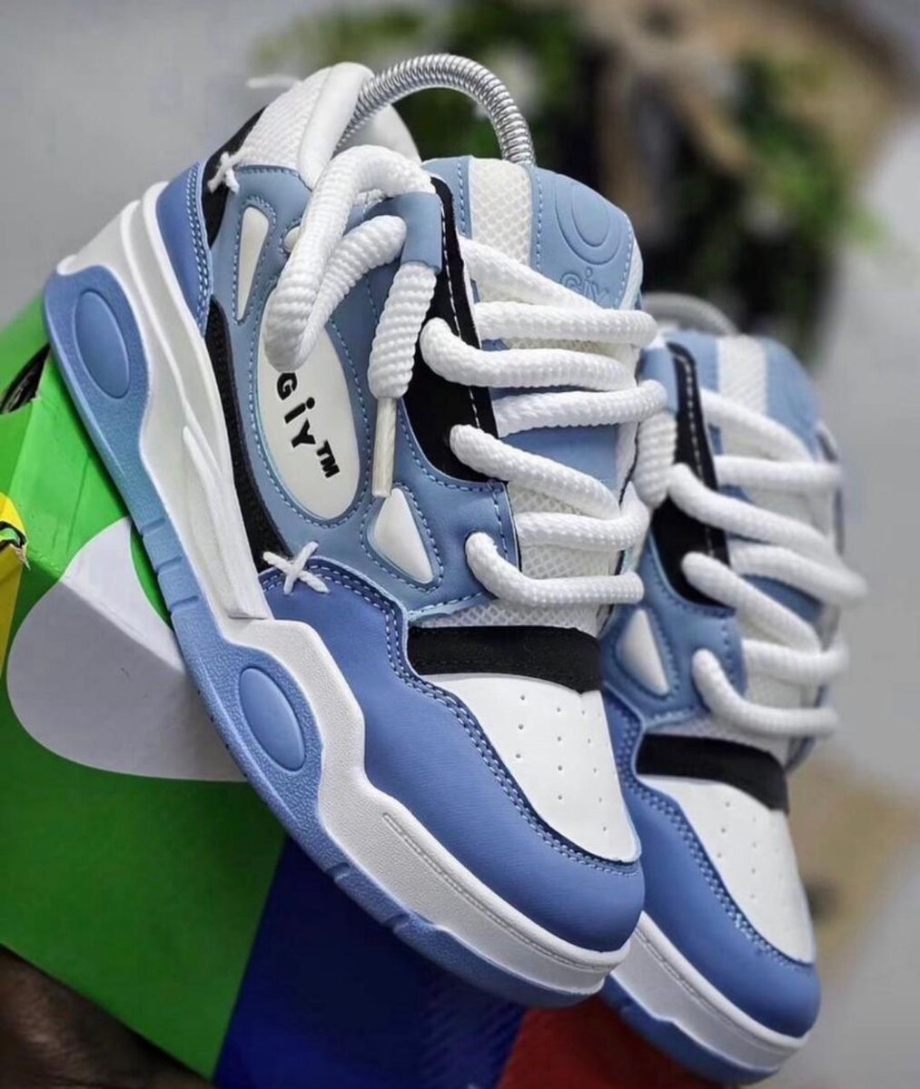 Découvrez ces baskets robustes et élégantes, parfaites pour un usage quotidien ou des activités sportives. Conçues pour les hommes, elles offrent confort et style avec leur combinaison de bleu et de blanc. Les lacets blancs et les accents noirs ajoutent une touche moderne.
