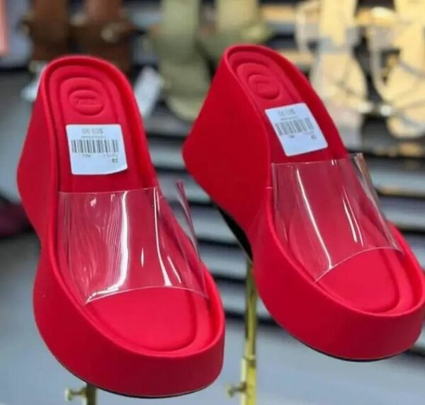 Mules compensées rouges tendance