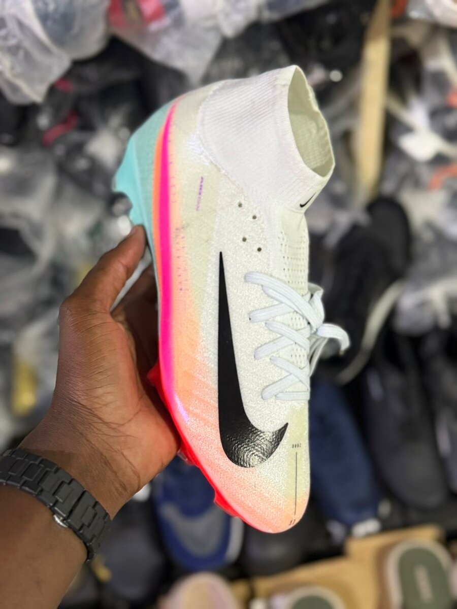 Chaussures de foot Nike Mercurial - Blanc/Bleu