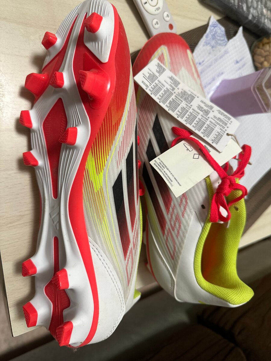 Chaussures de football Adidas rouges pour hommes. Conçues pour la performance, elles offrent une adhérence optimale et un confort maximal. Idéales pour les joueurs exigeants.