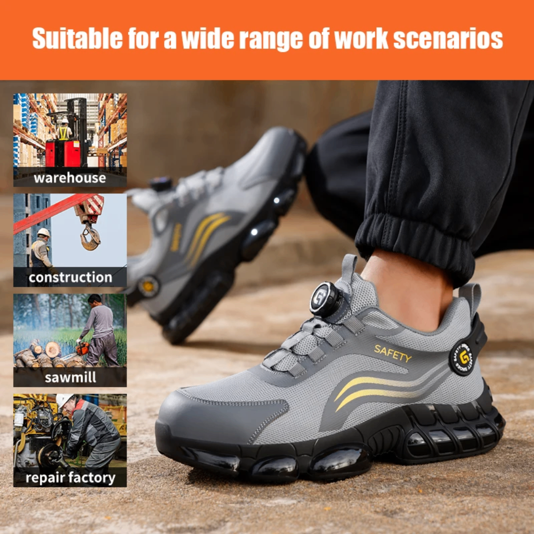Découvrez les chaussures de sécurité GUYISA, parfaites pour l'entrepôt, le chantier ou l'atelier. Grâce à un embout en acier et une maille respirante, elles offrent protection et confort. La semelle TPU assure une adhérence optimale, idéale pour les environnements exigeants. Faites le choix de la sécurité et de l'efficacité au travail.