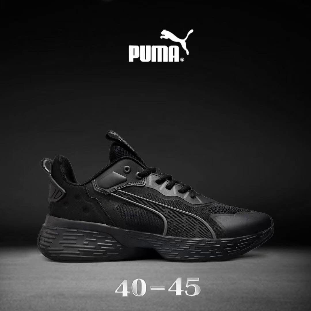 Découvrez les chaussures de sport Puma noires, idéales pour les séances d'entraînement ou un look décontracté. Conçues pour offrir confort et style, elles sont disponibles en tailles 40 à 45. Un choix parfait pour ceux qui recherchent performance et élégance.
