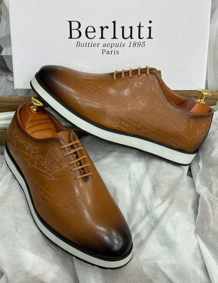 Découvrez l'élégance intemporelle des chaussures Derbies Berluti pour homme. Confectionnées en cuir de première qualité, ces chaussures offrent un confort exceptionnel et un style distinctif. Idéales pour les occasions formelles ou les sorties élégantes, ces Derbies ajoutent une touche sophistiquée à votre garde-robe. Avec une attention méticuleuse aux détails, elles incarnent le luxe et le savoir-faire artisanal. Parfaites pour l'homme moderne cherchant à allier confort et style.
