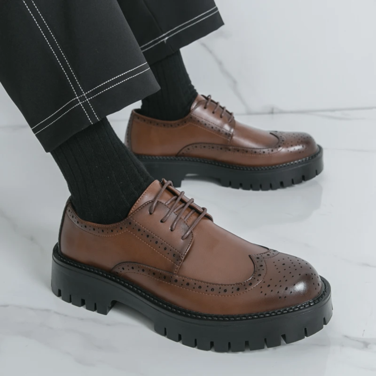 Élégantes chaussures Derby en cuir brun pour homme, idéales pour le bureau ou les occasions spéciales. Solides et stylées, elles offrent un confort exceptionnel.