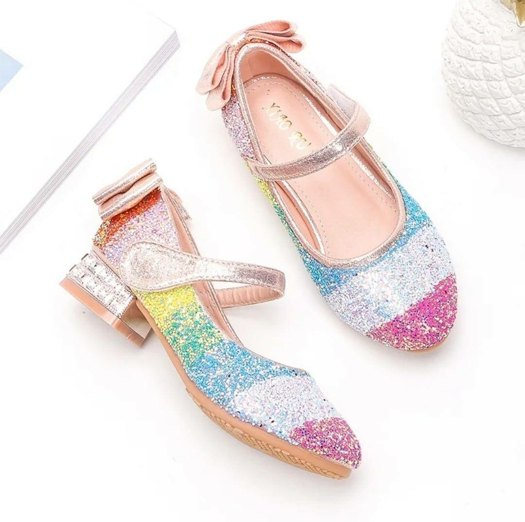 Ces élégantes chaussures pour enfants ajoutent une touche de magie avec leurs paillettes multicolores et leur petit talon. Parfait pour les fêtes ou occasions spéciales, elles offrent confort et style.
