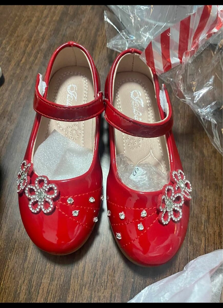 Ajoutez une touche de glamour à la tenue de votre enfant avec ces chaussures rouges éclatantes ornées de motifs floraux scintillants. Parfaites pour les occasions spéciales ou les sorties élégantes, elles combinent style et confort.