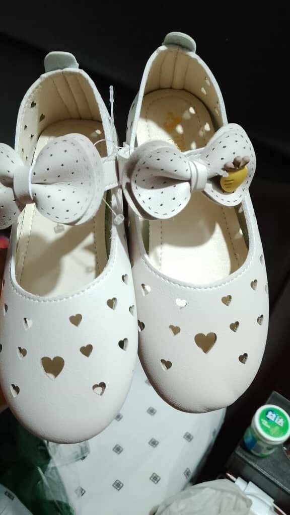 Chaussures confortables pour filles, blanches avec des cœurs découpés et noeuds décoratifs. Idéal pour les occasions spéciales ou quotidiennes.