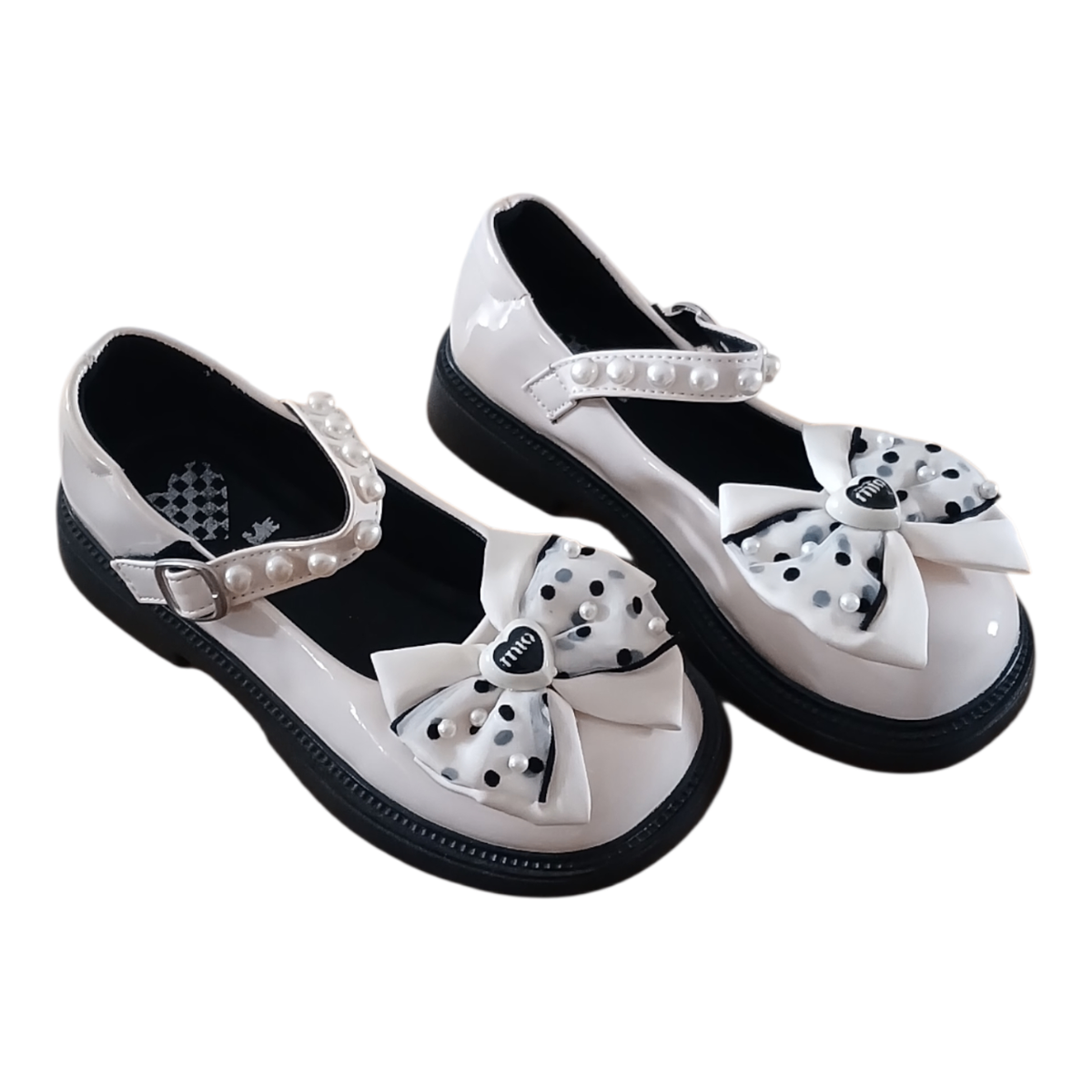 Découvrez ces chaussures pour filles avec un nœud décoratif et des détails élégants. Conçues pour les enfants, elles sont confortables et idéales pour les occasions spéciales ou une utilisation quotidienne. Les semelles en caoutchouc offrent une bonne adhérence.
