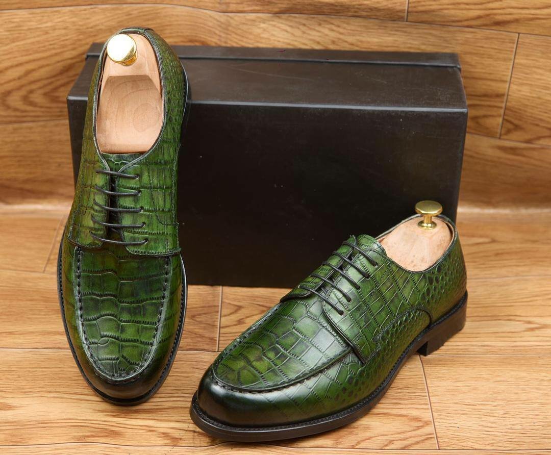 Élégantes chaussures habillées en cuir vert, parfaites pour les occasions spéciales. Conçues avec des détails soignés et une finition de haute qualité.