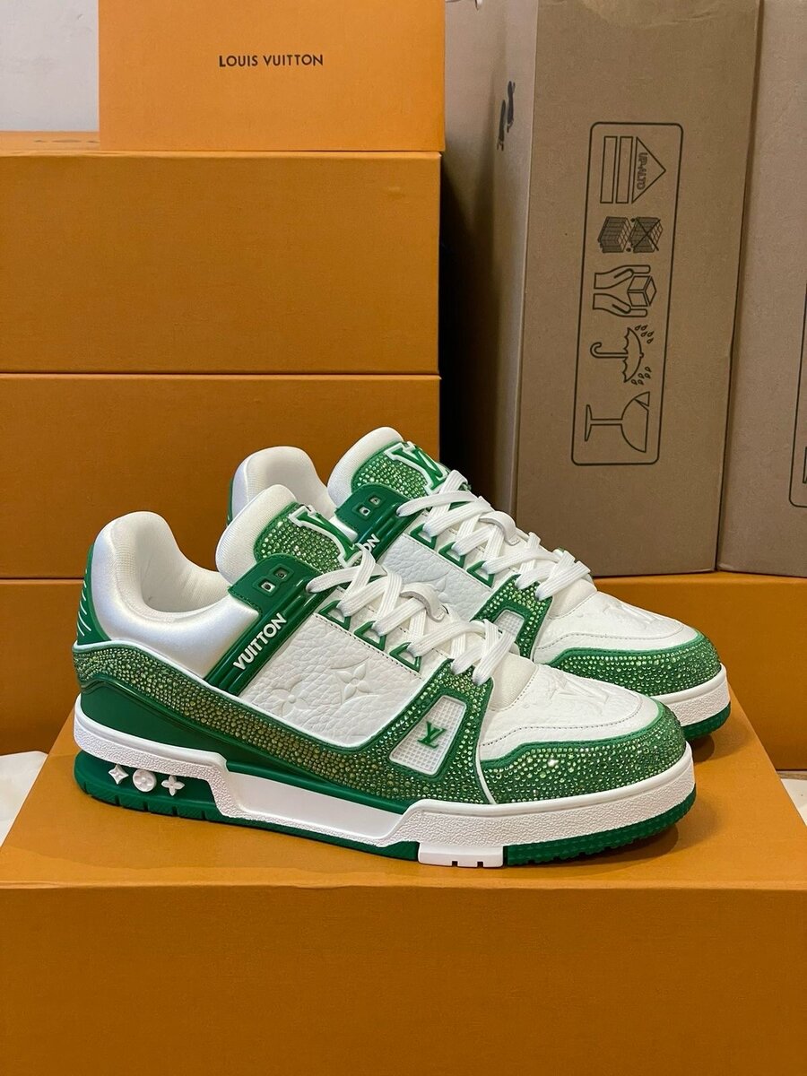 Découvrez ces chaussures Louis Vuitton vertes et blanches, conçues pour les hommes. Alliant style et confort, elles sont idéales pour les occasions décontractées ou les sorties élégantes. Fabriquées avec des matériaux de qualité, elles offrent une durabilité exceptionnelle.