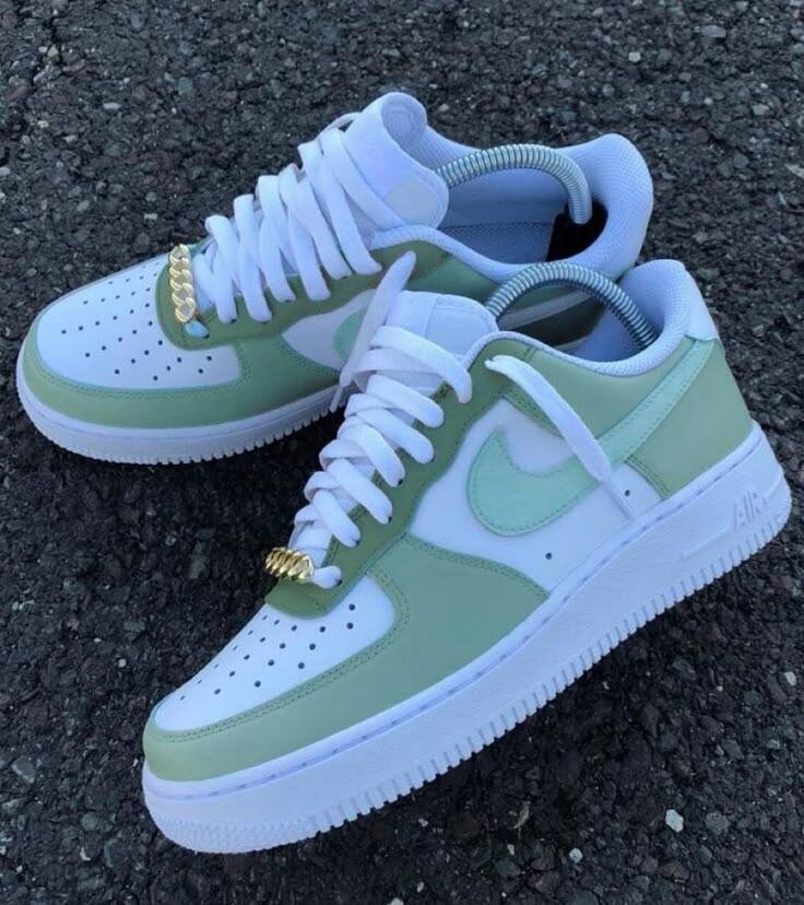Découvrez les chaussures Nike Air Force 1 avec une combinaison élégante de blanc et de vert. Ces baskets sont idéales pour un usage quotidien, offrant un confort et un style exceptionnels. Parfaites pour les amateurs de sneakers.