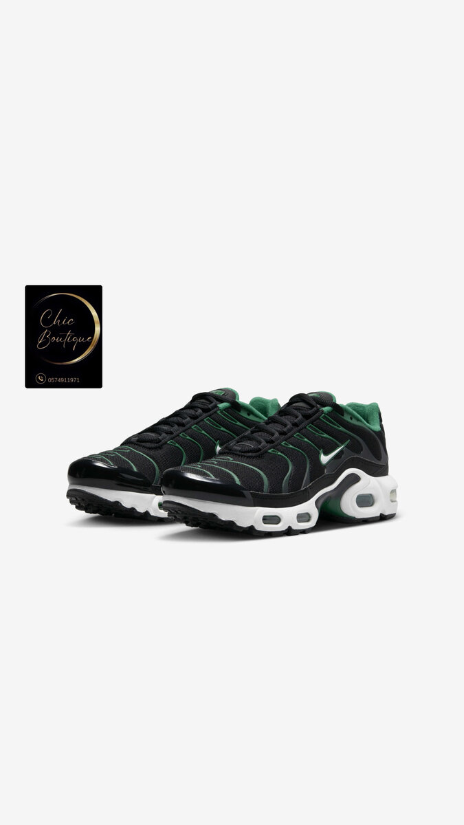 Découvrez les chaussures Nike Air Max noires avec accents verts. Conçues pour le confort et la performance, elles sont idéales pour le sport et le quotidien. Semelle extérieure en caoutchouc, design moderne.
