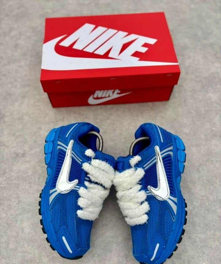 Découvrez ces chaussures Nike bleues avec des lacets blancs et une semelle robuste. Parfaites pour le sport ou le quotidien, elles allient confort et style. Un choix idéal pour les amateurs de la marque Nike.