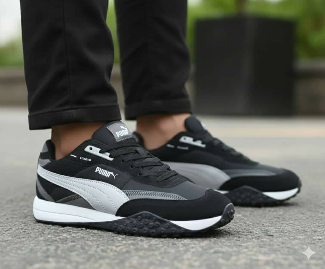Découvrez ces baskets Puma noires et grises, conçues pour le style urbain. Confortables et durables, elles sont idéales pour les activités quotidiennes ou les sorties décontractées. Leur semelle antidérapante offre une adhérence parfaite sur divers terrains.