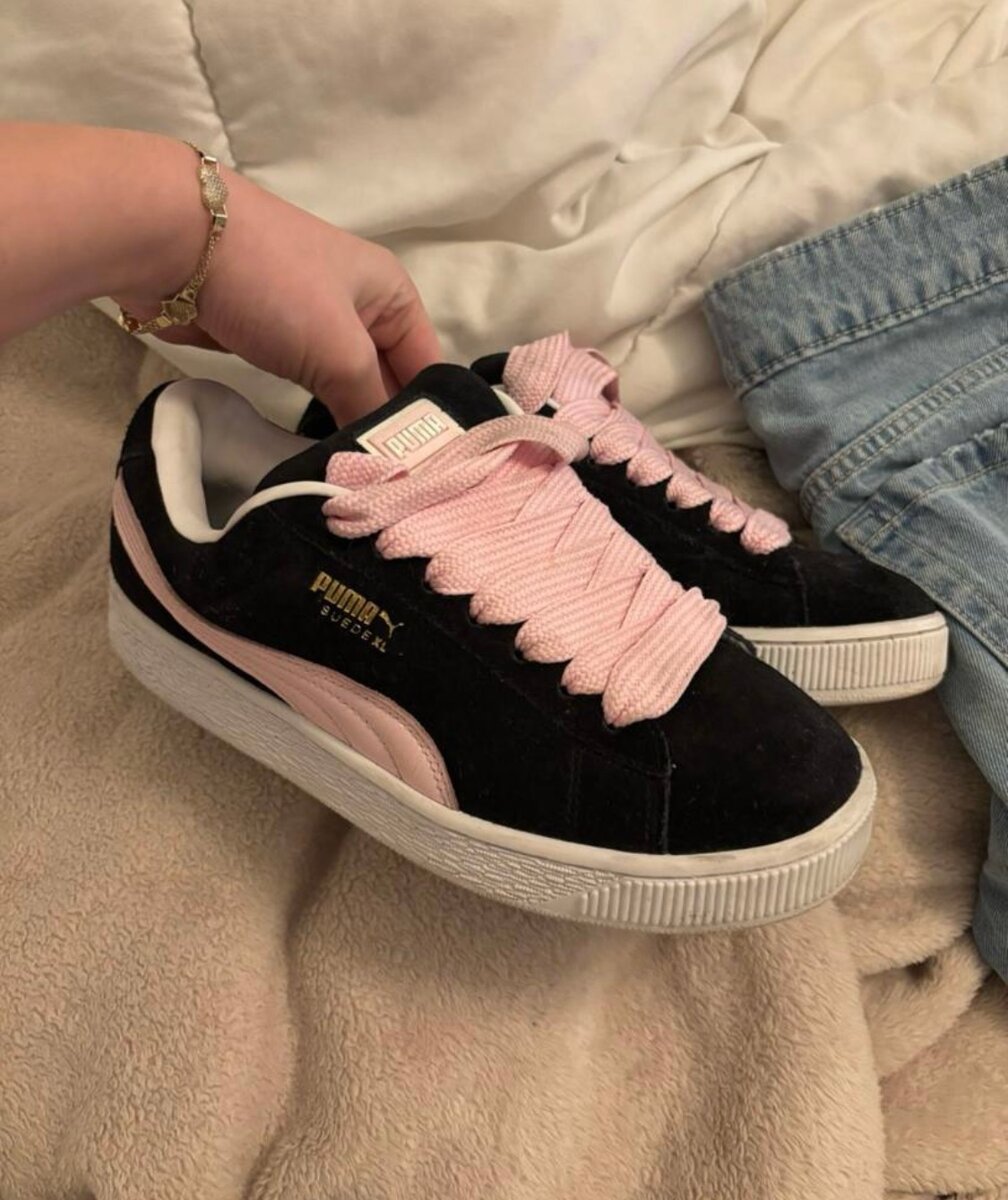 Découvrez ces baskets Puma noires avec lacets roses, parfaites pour un look décontracté et tendance. Conçues pour le confort et le style, elles sont idéales pour les activités quotidiennes ou les sorties en ville.