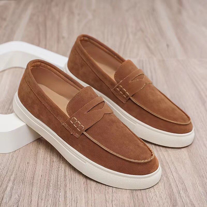 Découvrez ces chaussures slip-on en daim, confortables et élégantes. Disponibles en noir, gris et marron. Conçues pour un usage quotidien, elles sont idéales pour les tenues décontractées.