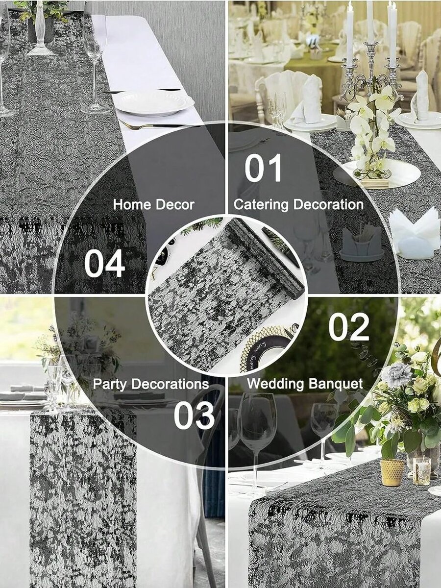 Ajoutez une touche d'élégance à votre table avec ce chemin de table moderne et chic. Idéal pour les mariages, réceptions et soirées, il rehausse chaque occasion. Fabriqué avec des matériaux de haute qualité, ce chemin de table est le choix parfait pour transformer n'importe quel espace en un lieu accueillant et raffiné. Parfait pour la décoration intérieure ou événementielle.
