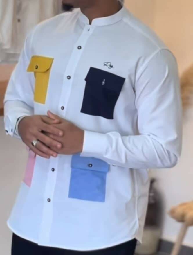 Chemise moderne pour homme avec design multicolore et poches fonctionnelles. Idéale pour un style casual chic, elle offre confort et praticité. Parfaite pour le bureau ou les sorties.