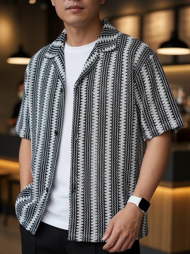 Découvrez cette chemise à motifs rayés, idéale pour un look casual et moderne. Fabriquée avec des matériaux de qualité, elle offre un confort optimal. Parfaite pour les sorties en ville ou un style décontracté.