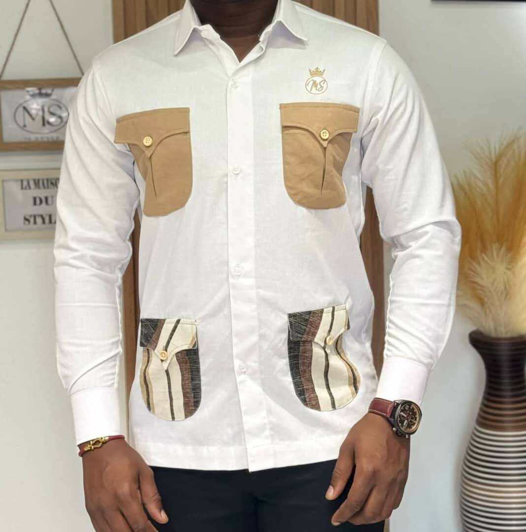 Découvrez cette chemise élégante avec des poches contrastées pour un style unique. Parfaite pour les occasions formelles ou décontractées, elle ajoute une touche de sophistication à votre garde-robe. Conçue dans un tissu confortable, c'est un choix idéal pour l'homme moderne.