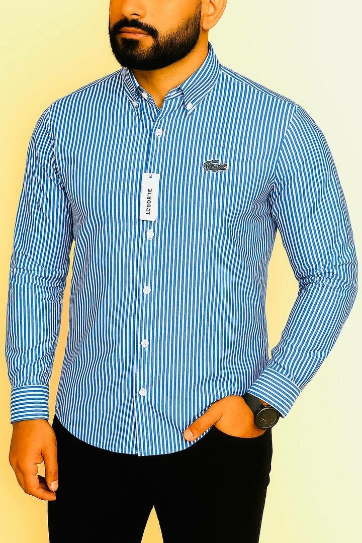 Optez pour un style élégant avec cette chemise à rayures bleues pour homme. Parfaite pour le bureau ou les occasions spéciales, sa coupe ajustée met en valeur la silhouette. Fabriquée en coton de haute qualité pour un confort optimal tout au long de la journée. Idéale pour compléter une tenue décontractée ou formelle. Un choix incontournable pour l'homme moderne.