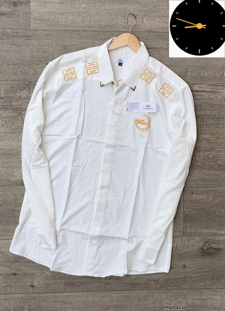 Chemise blanche pour homme, design luxe avec détails dorés. Confectionnée avec soin, idéale pour les occasions spéciales ou le quotidien élégant.